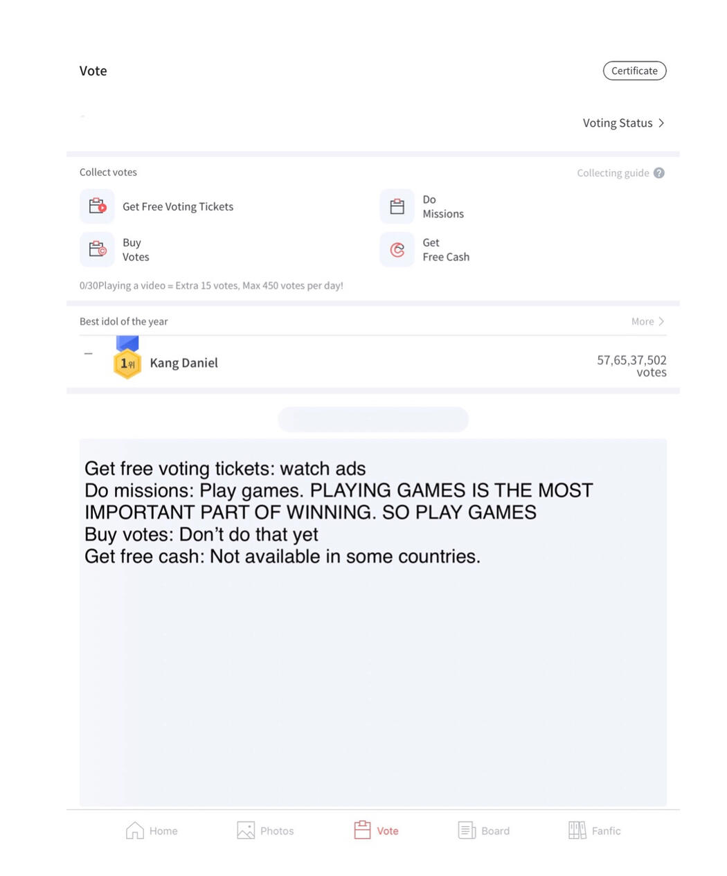 Note: Commenting on fanfics doesn’t give votes anymore.